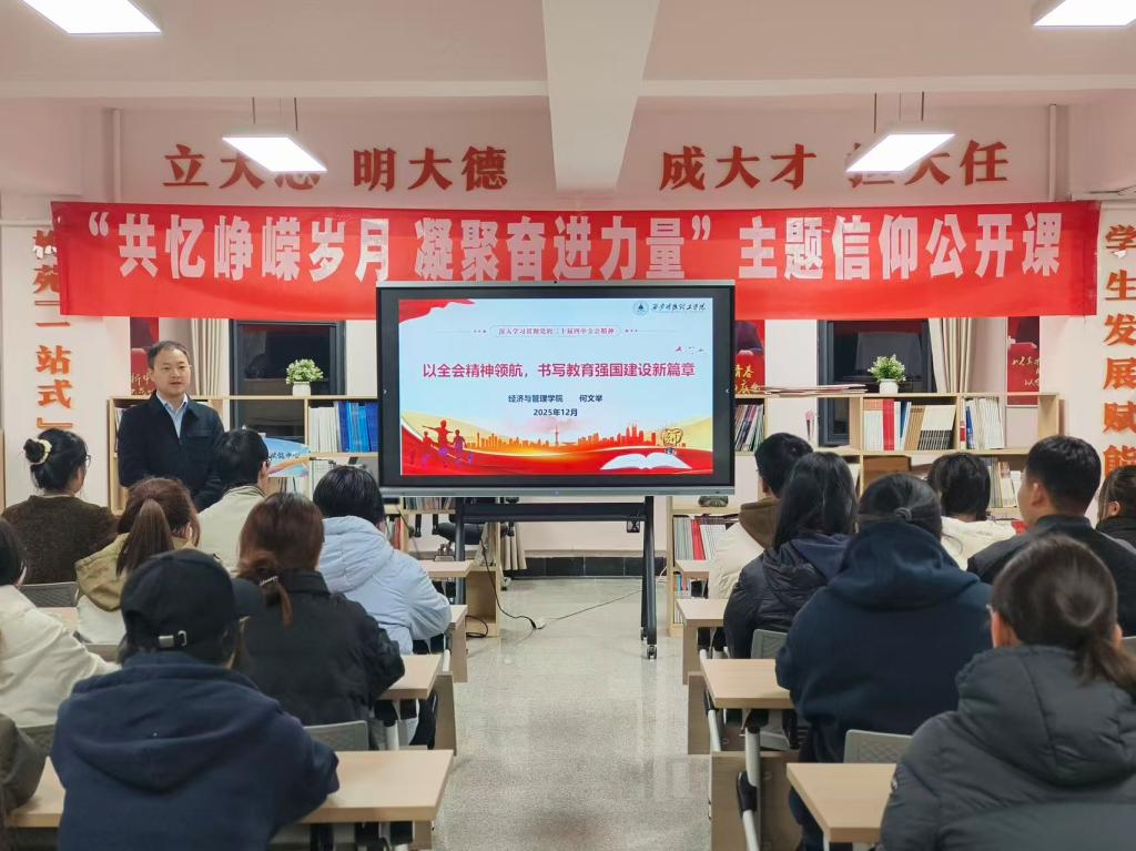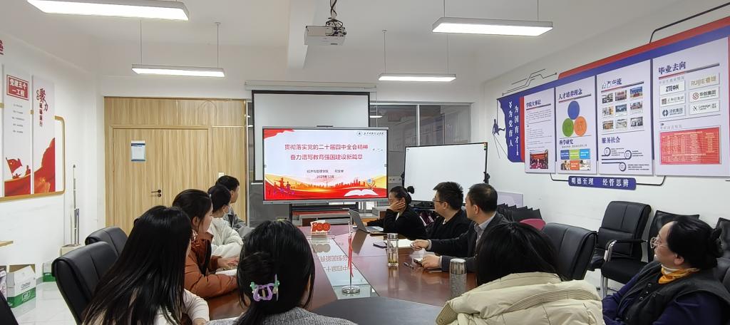 为深入学习贯彻党的二十届四中全会精神,12月8日,经济与管理学院党委书记何文举在明志楼北606宣讲党的二十届四中全会精神,进一步统一思想、凝聚共识、推动落实。学院党委理论学习中心组学习会成员参加了学习。...