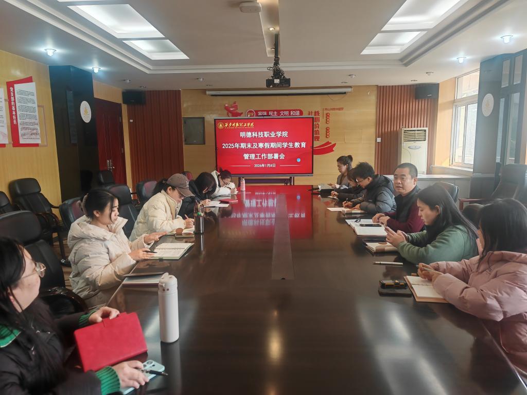 为进一步提升辅导员队伍专业化水平,强化学生工作案例分析与应急处理能力,1月23日中午,明德科技职业学院在明理楼216会议室组织召开2026...