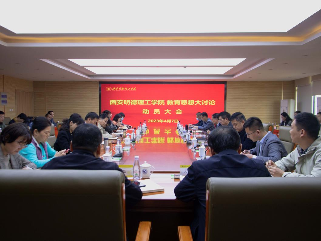 4月7日下午,西安明德理工学院教育思想大讨论动员会议在学校明志楼南518会议室顺利召开。全体校领导、二级学院院长、副院长、党委书记、各职能部门、教辅单位负责人等50人出席了会议,会议由党委书记阎东明主持。动...