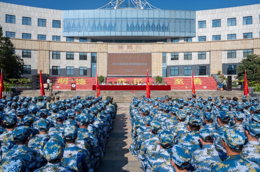 【开学第一课】学校举行“心系国防,明德励志”2023级新生军...
