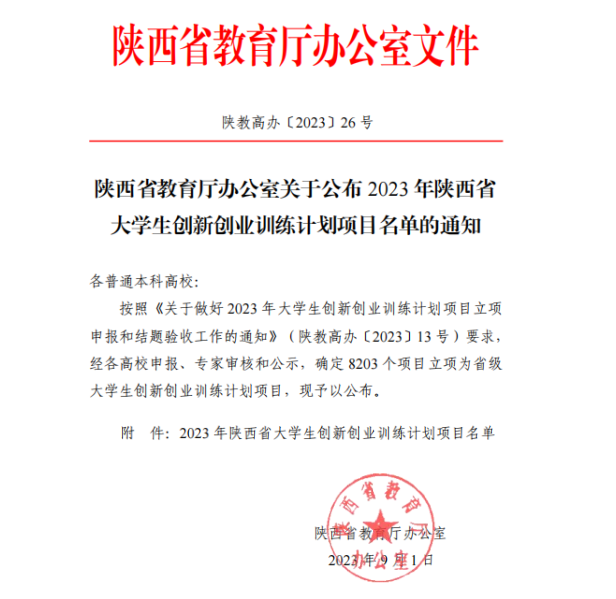 近日,在陕西省教育厅公布的2023年大学生创新创业训练计划项目评选结果中,我校共有68项大学生创新创业训练计划项目立项,其中“北斗智行”等8个项目获国家级推荐,“高校双创背景下学生社团的发展研究——以西安明...