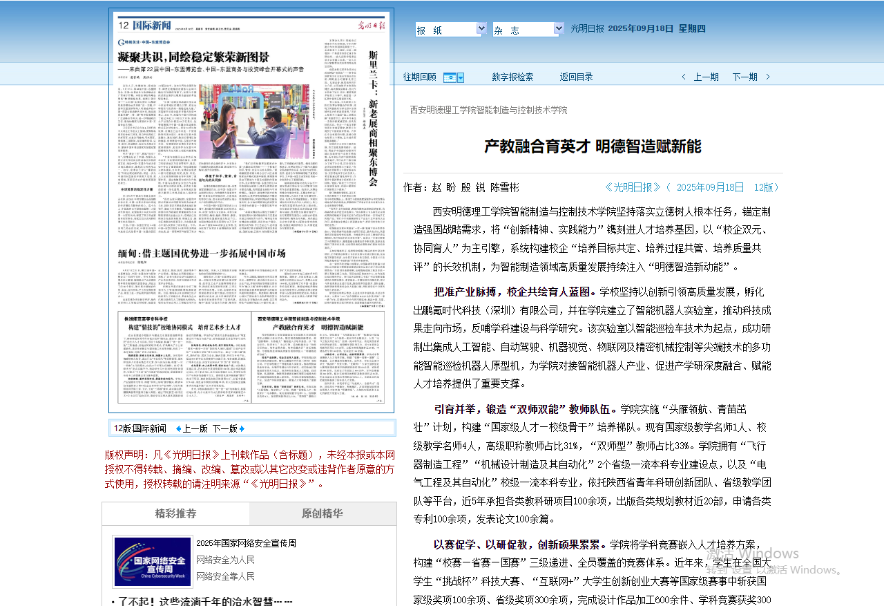 光明日报:西安明德理工学院智能制造与控制技术学院 产教融...
