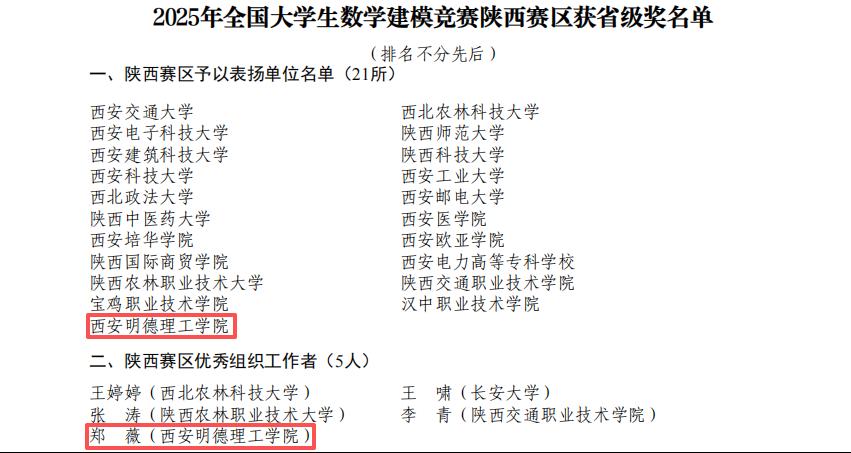 11月28日,2025年“高教社杯”全国大学生数学建模竞赛成绩揭晓。经过激烈的角逐,我校共获得本科组国家二等奖2项,陕西赛区省一等奖10项,二等奖22项;专科组国家二等奖1项,陕西赛区省一等奖3项,二等奖1项,学校...