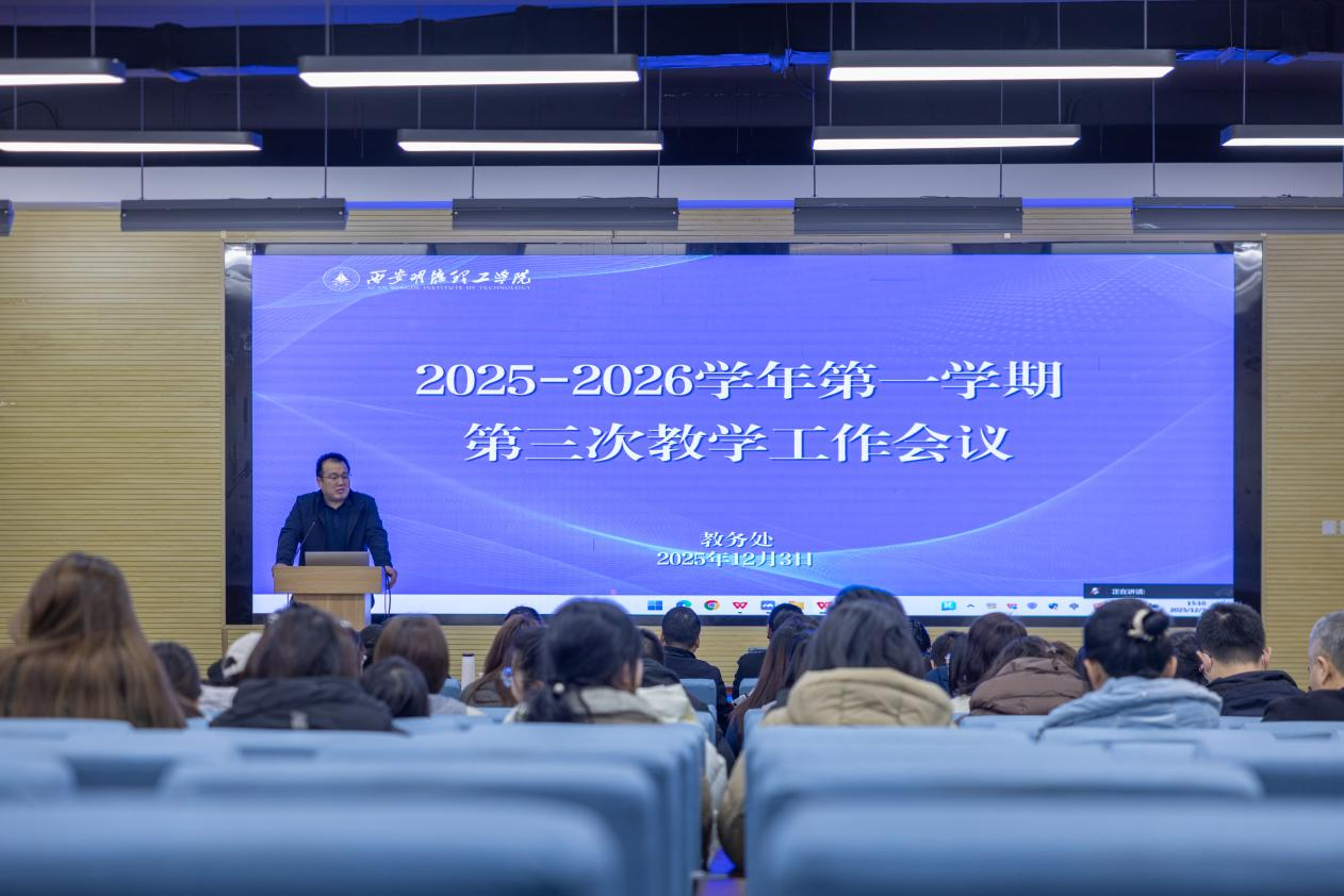 为进一步落实教学管理基础,推动人才培养质量再上新台阶,12月3日,学校在建德楼202报告厅召开2025-2026学年第一学期第三次教学工作会议。分管教学副校长朱延波出席会议,各二级学院院长、副院长、专业负责人、教研...