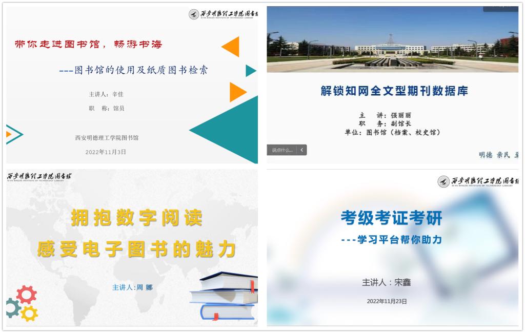 为提升广大师生信息素养及文献资源获取能力,进一步增强馆员主动服务意识,切实为学校教育教学及科研工作做好文献资源保障与服务,2022年11月2日-23日,图书馆举办信息素养教育系列讲座四场,主题依次为:带你走进...