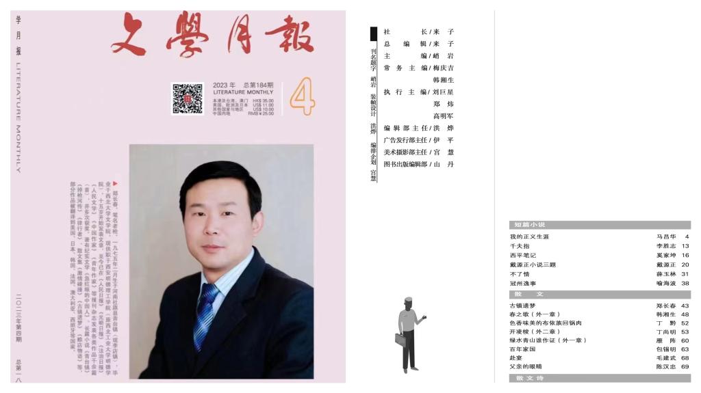 我校郑长春老师荣登《文学月报》封面人物