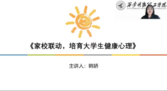 为了进一步加强家校联系,促进学生健康成长,充分发挥家校教育合力,6月26日,学校举办了《家校联动,培育大学生健康心理》第一期线上专题讲座,本次讲座由心理健康教育教师韩娇主讲。讲座中韩娇围绕大学生的心理特...