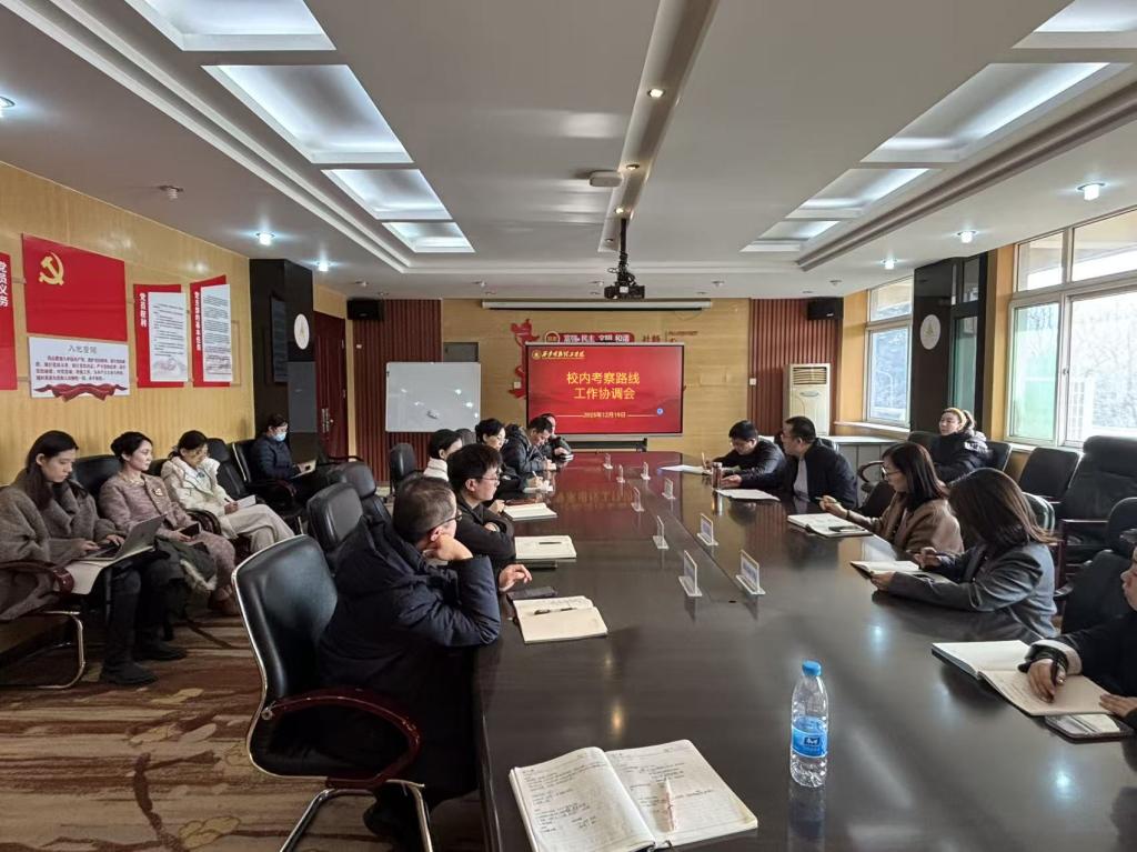 为确保校内考察环节规范有序、高效推进,全面彰显学校在办学条件、教学管理、文化育人等方面的建设成果。2025年12月19日上午,学校在明理楼216会议室专题召开校内考察路线工作协调会。各考察点位负责人、讲解人员、...