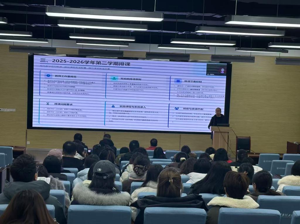 为全面落实学校教学工作部署,扎实推进诊断评估整改,稳妥做好期末各项教学收尾工作,2026年1月12日,马克思主义学院在6号建德楼201召开专题教学工作会议。学院领导班子及全体教职工参会,会议由副院长惠斌主持。会...