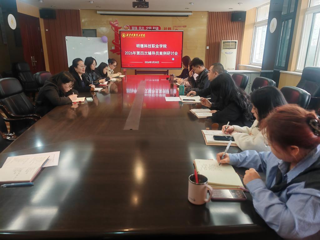 为精进辅导员专业素养,增强学生工作案例剖析与应急处置能力,3月30日下午,明德科技职业学院在明理楼216会议室召开第四次辅导员案例研讨会,会议围绕学生假期工作、网络不当言论等热点问题展开深入研讨。辅导员刘...