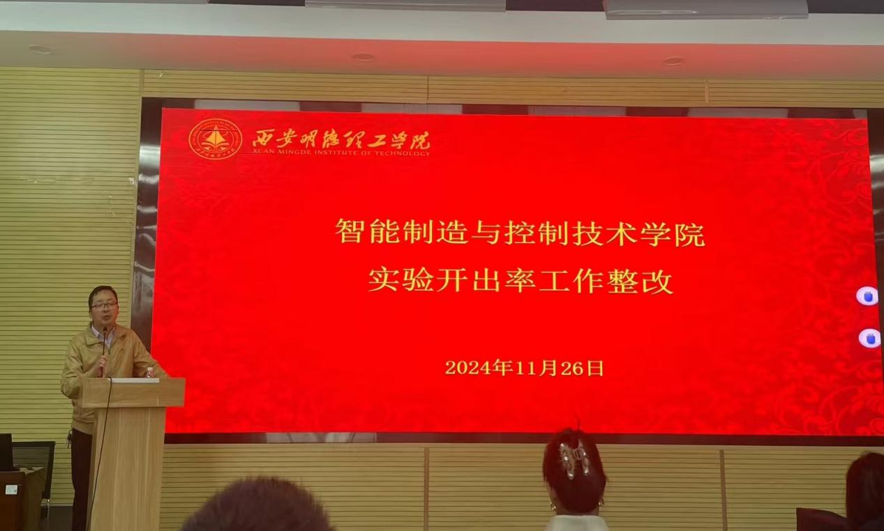 2024年11月26日,智能制造与控制技术学院在建德楼202报告厅召开实验开出率工作整改反馈会。此次会议旨在针对近期实验开出工作中存在的问题进行整改反馈,确保实验教学工作的高效、有序开展。学院副院长李建勇主持会议,全体教职工参加会议。