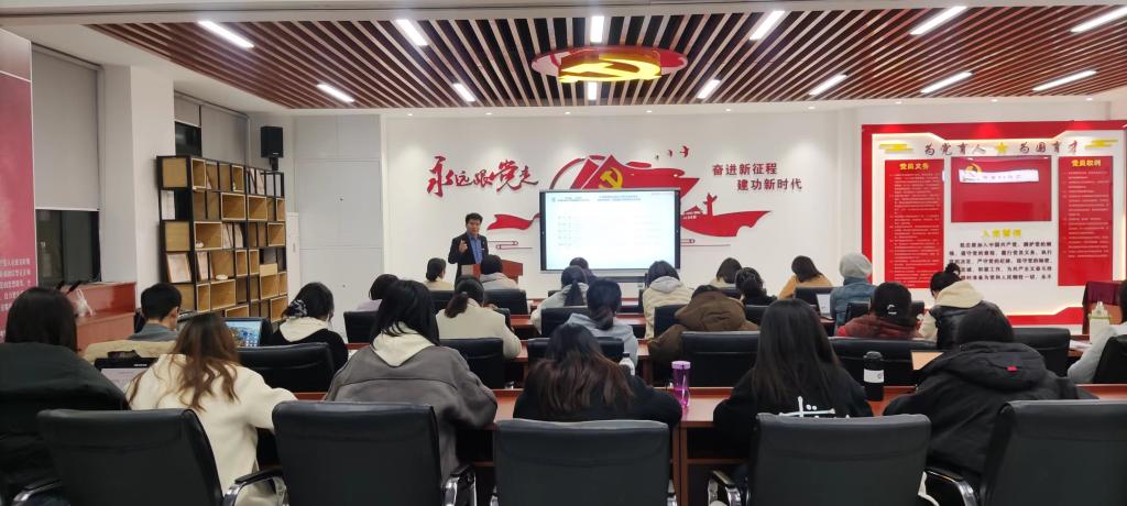 报告会由高等职业技术学院党总支书记、副院长王庭良主持,副院长于莉、党总支副书记王飞、办公室主任陆鹤以及学院全体专职教师参加活动。