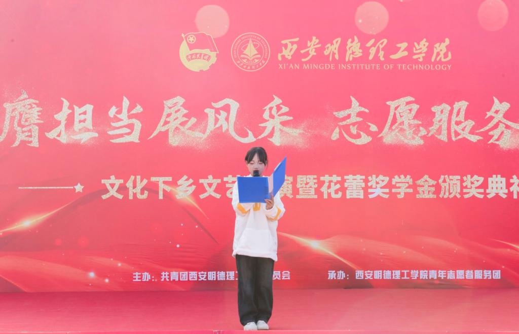 本次“挺膺担当展风采· 志愿服务暖乡村”文化下乡文艺汇演暨“花蕾”奖学金颁奖典礼,不仅是对学校志愿服务工作的一次盛大总结,更是对未来梦想的坚定承诺。西安明德理工学院青年志愿者服务团将持续秉承“学在明德受教育,社会实践长才干,志愿服务作贡献”的实践理念,不断探索创新,以实际行动践行社会责任,助力乡村振兴,让爱与希望的种子在每一寸土地上生根发芽,绽放出最美的花朵。