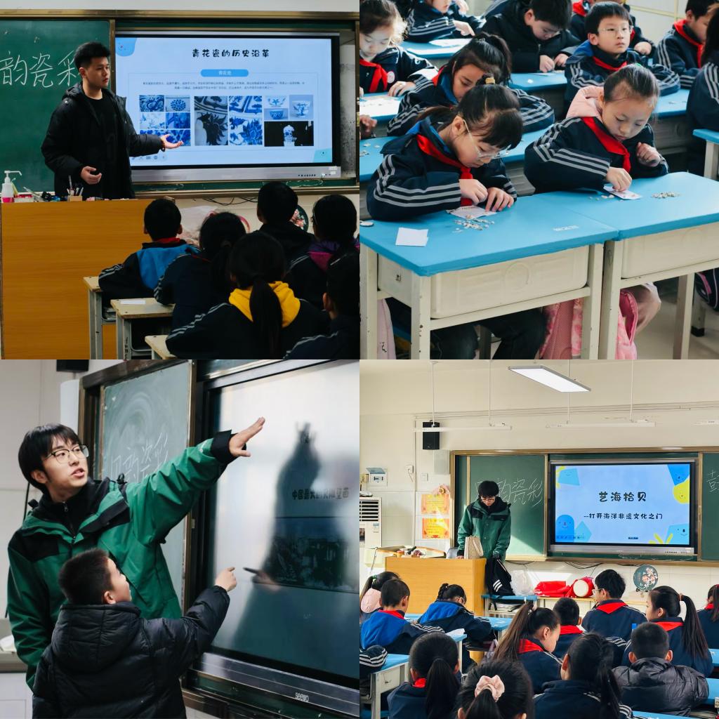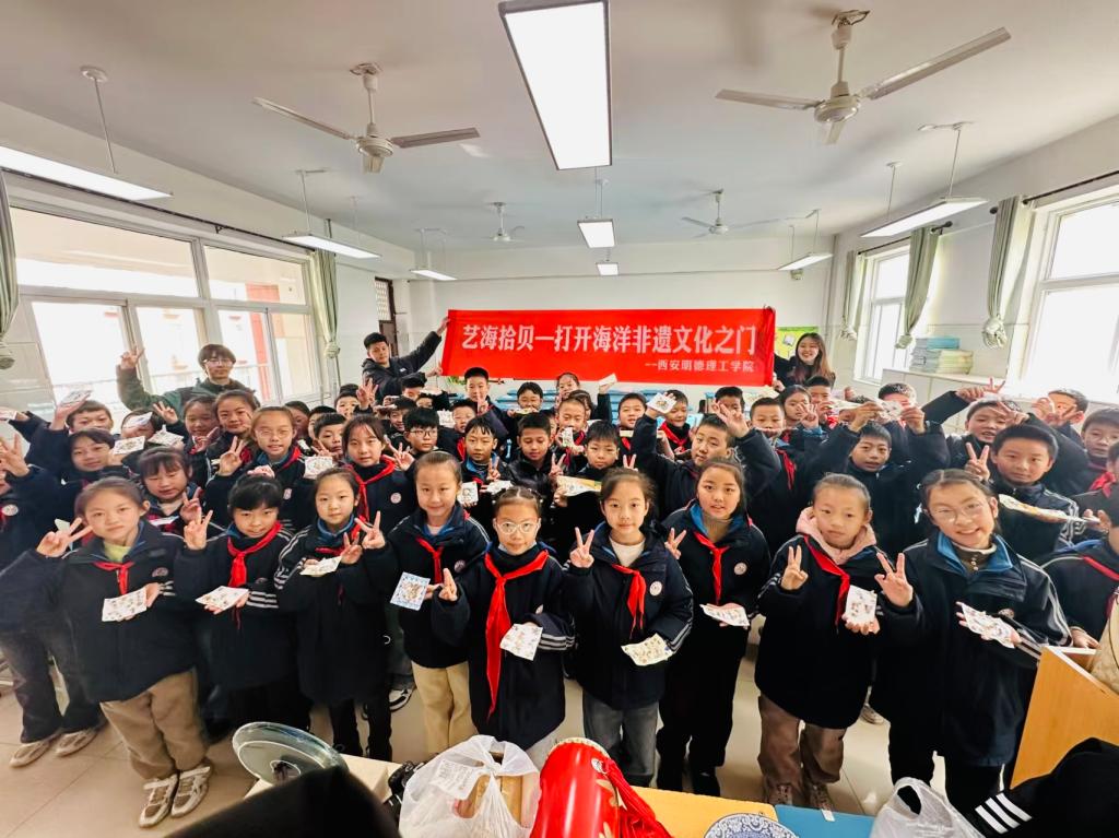 12月5日,西安明德理工学院经济与管理学院“艺海拾贝——打开海洋非遗文化之门”非遗文化传承实践队一行5人赴渭南高新小学开展“贝韵瓷彩—鼓韵风华非遗集”进校园活动,活动特别邀请了渭南高新小学六年级四班、四年级一班及二年级四班的师生共155人参与。
