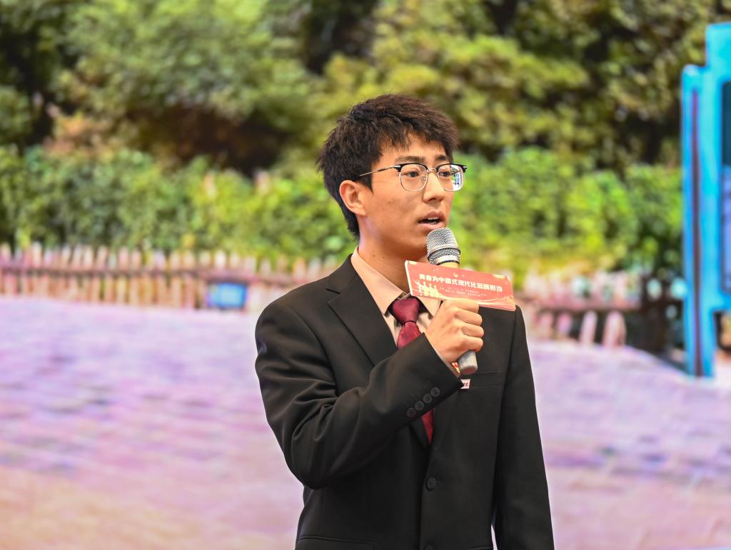 校团委副书记刘雄进行了精彩点评。刘雄副书记对参赛选手的表现予以充分肯定,指出选手们准备充分,情感真挚,在演讲中深刻诠释了对“一二·九”运动精神的理解与传承,彰显出新时代青年对中国式现代化建设的热忱与担当。同时,他也提出了宝贵建议,强调部分选手在内容逻辑的连贯性与深度挖掘上仍有提升空间,希望选手们能更加注重结合实际案例,让演讲内容更具感染力与说服力。此次点评为选手们指明了改进方向,也激励着全体同学在青春的赛道上,以先辈为榜样,为中国式现代化凝心聚力,勇挑重担,书写无愧于时代的青春华章。
