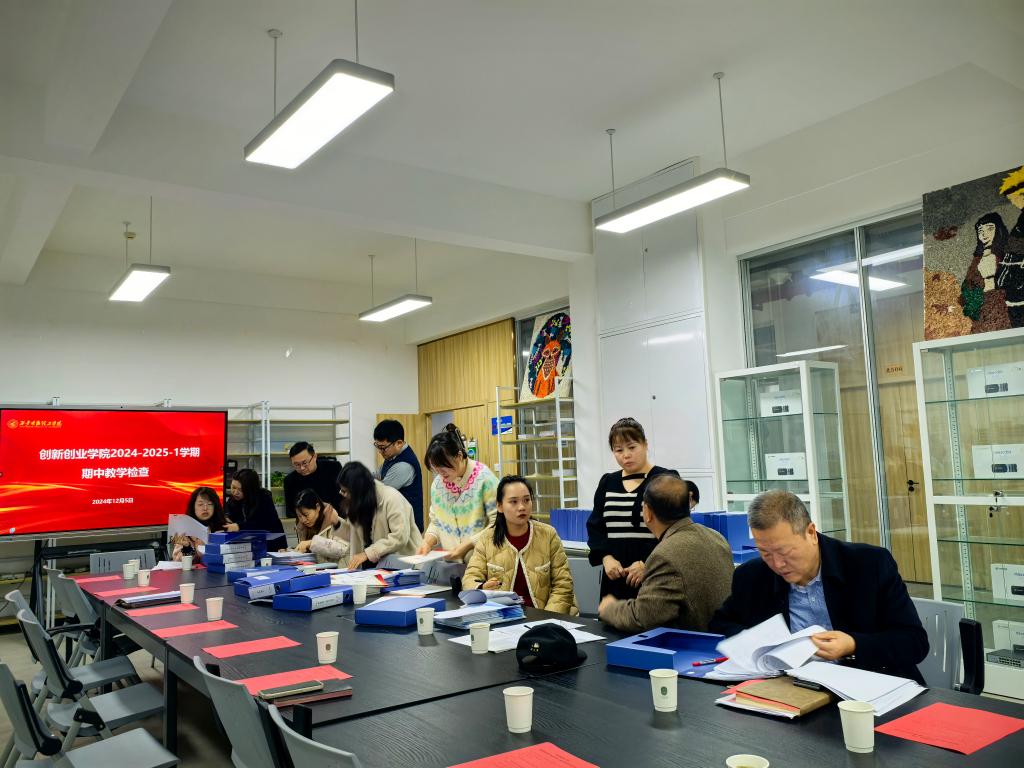 第一阶段,由各二级学院汇报自查情况,详细总结了本学期以来的教学工作开展情况。汇报内容涵盖了教学计划执行情况、师资队伍建设、实践教学、五位一体评价等多个方面。部分学院还特别突出了自身在教学创新、课程改革以及学生能力培养上的亮点和特色,充分展示了各学院在教学工作中的显著成果。