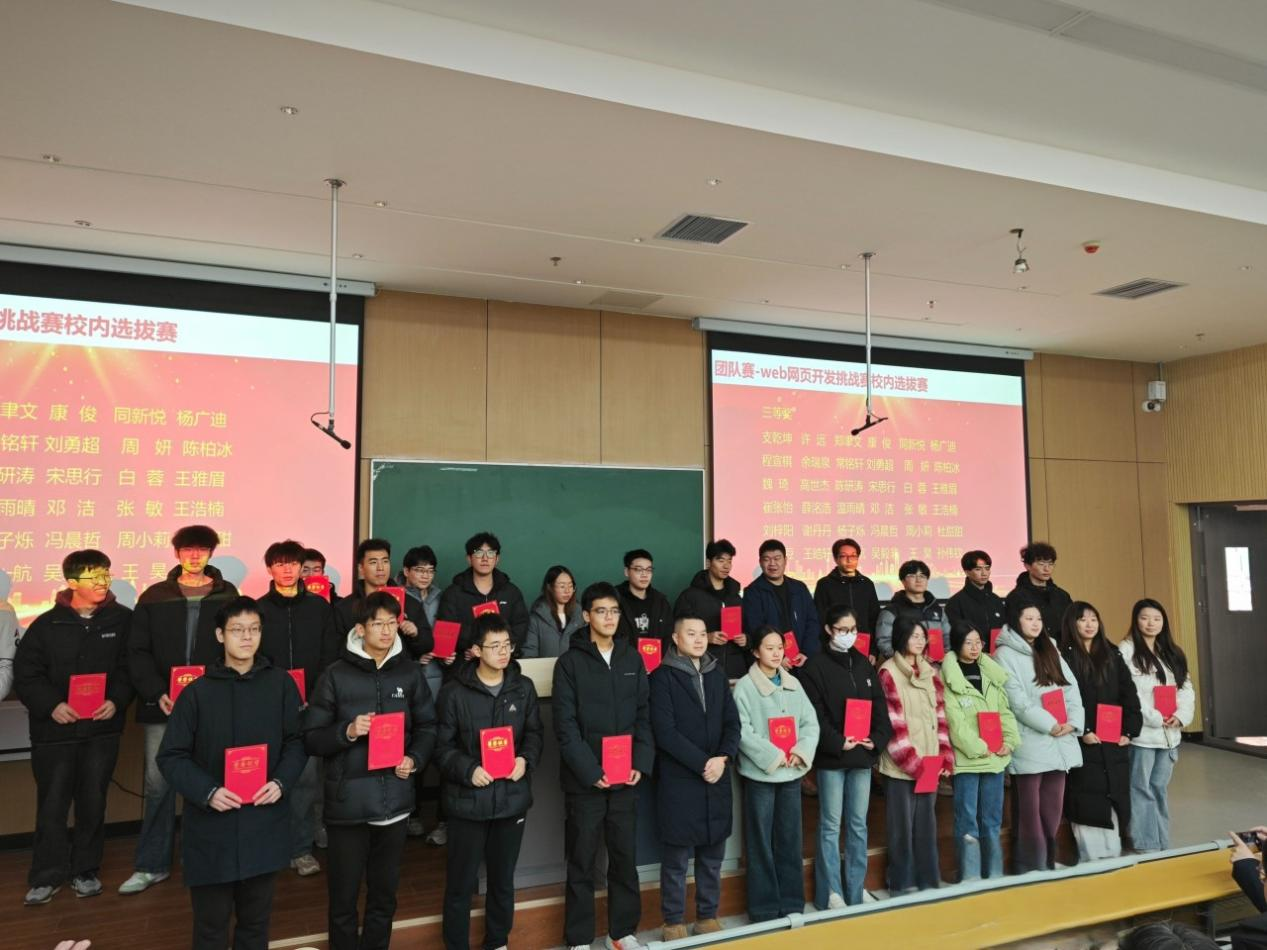 紧接着,颁奖环节在大家的期待中庄重开启。获奖名单逐次公布,各赛道的佼佼者们怀揣着紧张与激动,步伐坚定地迈向领奖台。他们手中的奖状奖杯闪耀夺目,那是数月来日夜奋战、精益求精的最好见证。从一等奖得主自信飞扬的笑容,到二等奖、三等奖获得者眼中炽热的光芒,每个人脸上都镌刻着收获荣誉的喜悦与对未来技术之路的无限憧憬。台下师生们的掌声此起彼伏,敬意与祝福满溢其间,现场气氛一次次被推向高潮。