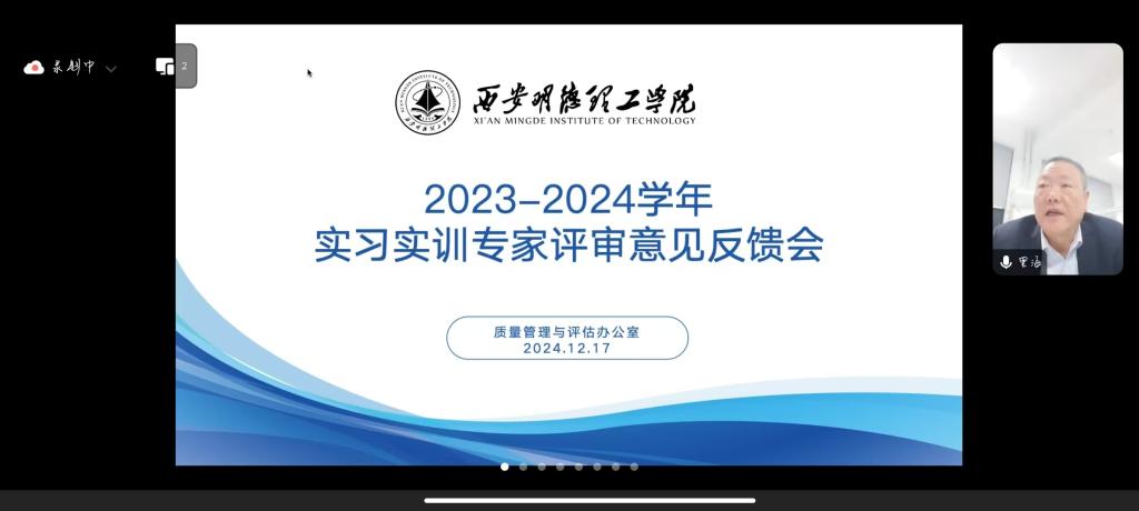 12月17日,学校组织了实习实训专家评审意见反馈会,质量管理与评估办公室李海峰教授反馈了实习实训督评中发现的普遍性问题,六位专家反馈了各学院存在的个性问题。校企合作管理中心副主任崔岩汇报了实习实训基地考察情况,并对实习实训基地建设提出了具体要求。教务处副处长任华对实习实训工作提出了“六个要”的要求。质量管理与评估办公室主任张瑜进行了总结发言,她要求各学院认真学习专家组提出的意见和建议,对现存的问题及其根源展开全面且系统的梳理与剖析,从培养方案、课程大纲、制度细则、基地建设、教学组织、教师培养、材料规范性等方面制定整改计划。