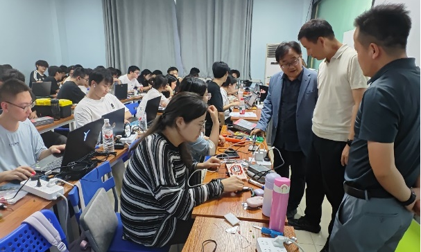 座谈会后,在企业领导的陪同下,学院一行深入实习实训现场,与学生面对面交流。领导们亲切询问学生的实习内容、项目进展以及遇到的问题与收获,倾听学生的实习心得与反馈。看到学生们熟练运用专业知识解决问题,学院领导给予充分肯定,并鼓励大家珍惜实习机会,主动向企业导师学习,积累实战经验,为未来职业发展打下坚实基础。