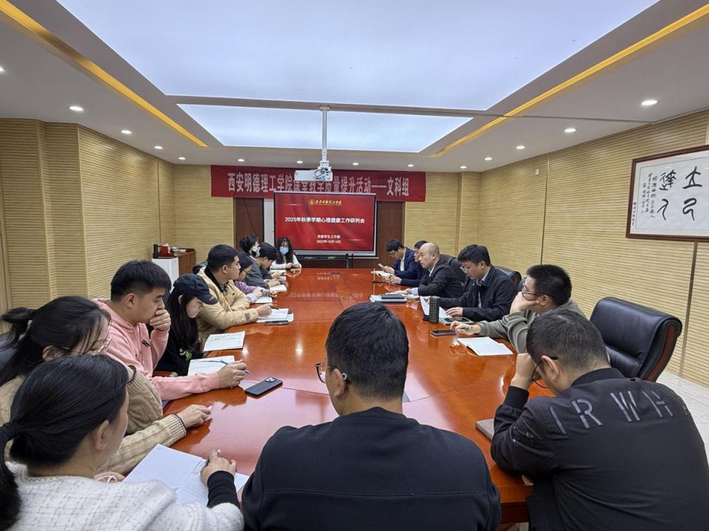 会议伊始,大学生心理健康教育中心郭学鹏老师就2025级新生心理普测结果作专题分析总结。本次普测依托教育部“中国大学生心理健康测评系统”开展,实现了全体新生100%全覆盖、无遗漏的测评目标。随后,各学院党委(党总支)副书记及心理专干结合本院实际,逐一汇报学生心理健康工作开展情况与突出问题,与会人员围绕“新生适应期干预策略”“重点学生家校协同机制”等议题展开深入讨论。