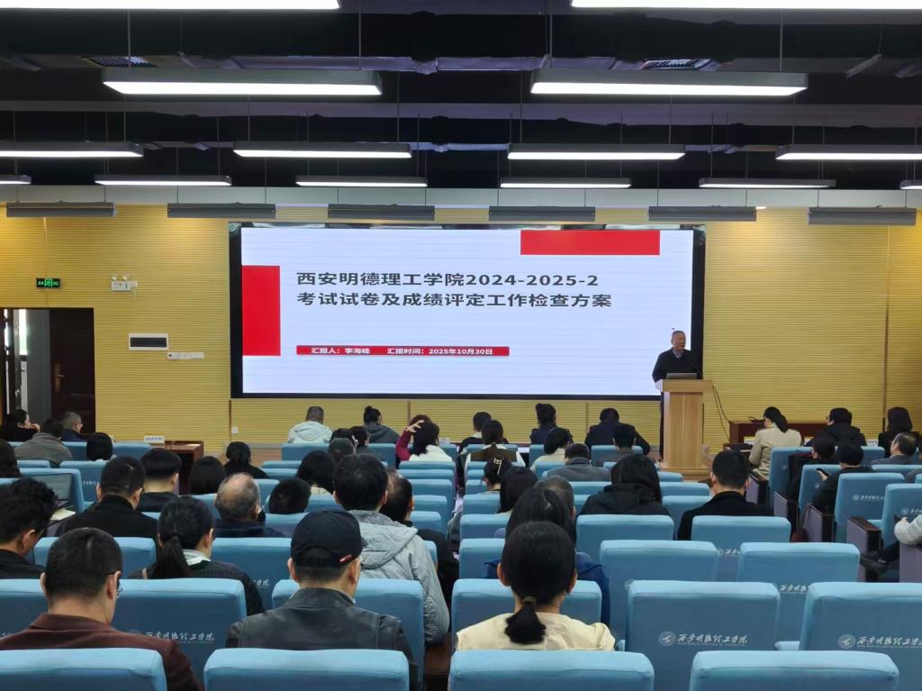 教务处副处长文亮解读了《西安明德理工学院考试(考核)管理工作条例(试行)》(校字〔2021〕138 号),强调了试卷检查要求,深化了各二级学院对试卷检查工作的理解。