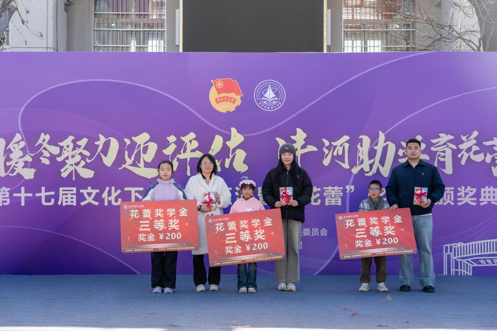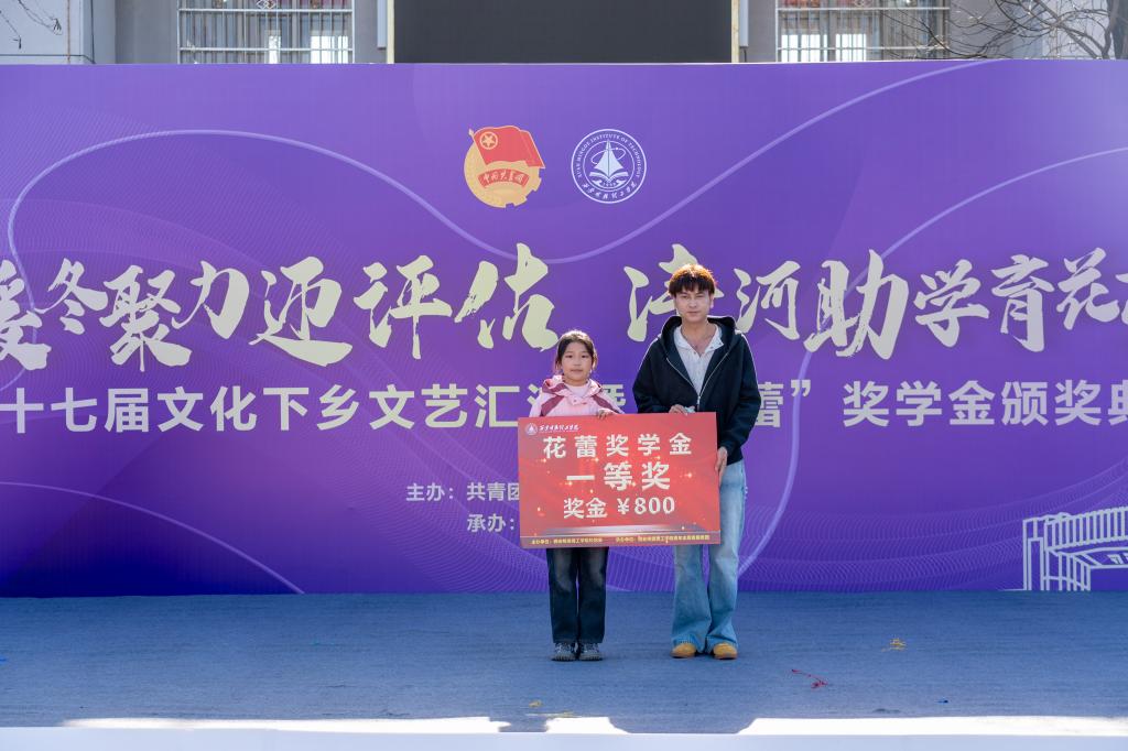 本次活动的核心环节是“花蕾”奖学金颁奖典礼。翁欣瑶等6名优秀儿童从100余名受教儿童中脱颖而出,获得表彰。一等奖获得者翁欣瑶在发言中感谢“沣河行动”公益项目及志愿者的陪伴与支持,表示未来将努力学习、传递爱心,以实际行动回报社会。该奖学金资金全部来源于我校连续17年开展的“沣河行动”爱心集瓶活动,志愿者回收废弃瓶子变卖所得,累计回收近100万个瓶子,筹得公益善款近5万元,全部用于资助“沣河行动”义务家教项目的受教儿童。