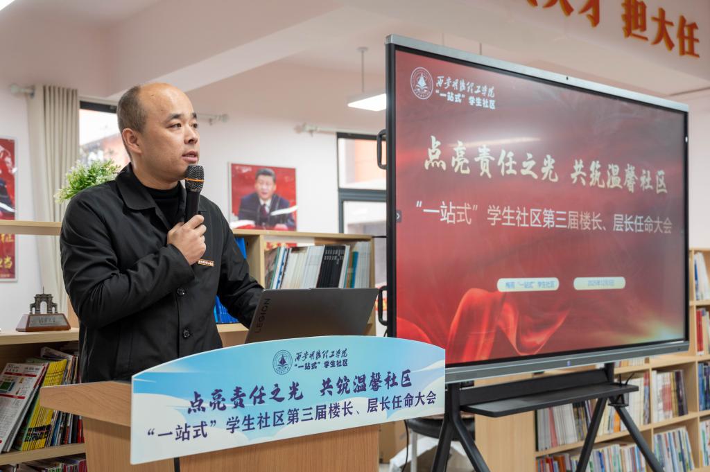 楼层长作为“一站式”学生社区管理和服务的骨干力量,是学生社区治理的重要抓手,此次任命大会有助于楼层长明晰自身工作职责、激发创新活力,我们共同期待新一届楼层长们在新的任期内,能够以更加积极的姿态参与到学生社区服务与管理中,在实践锻炼中,不断为构建和谐、文明的学生社区贡献力量,共同缔造“一站式”学生社区综合育人和全域管理新格局。