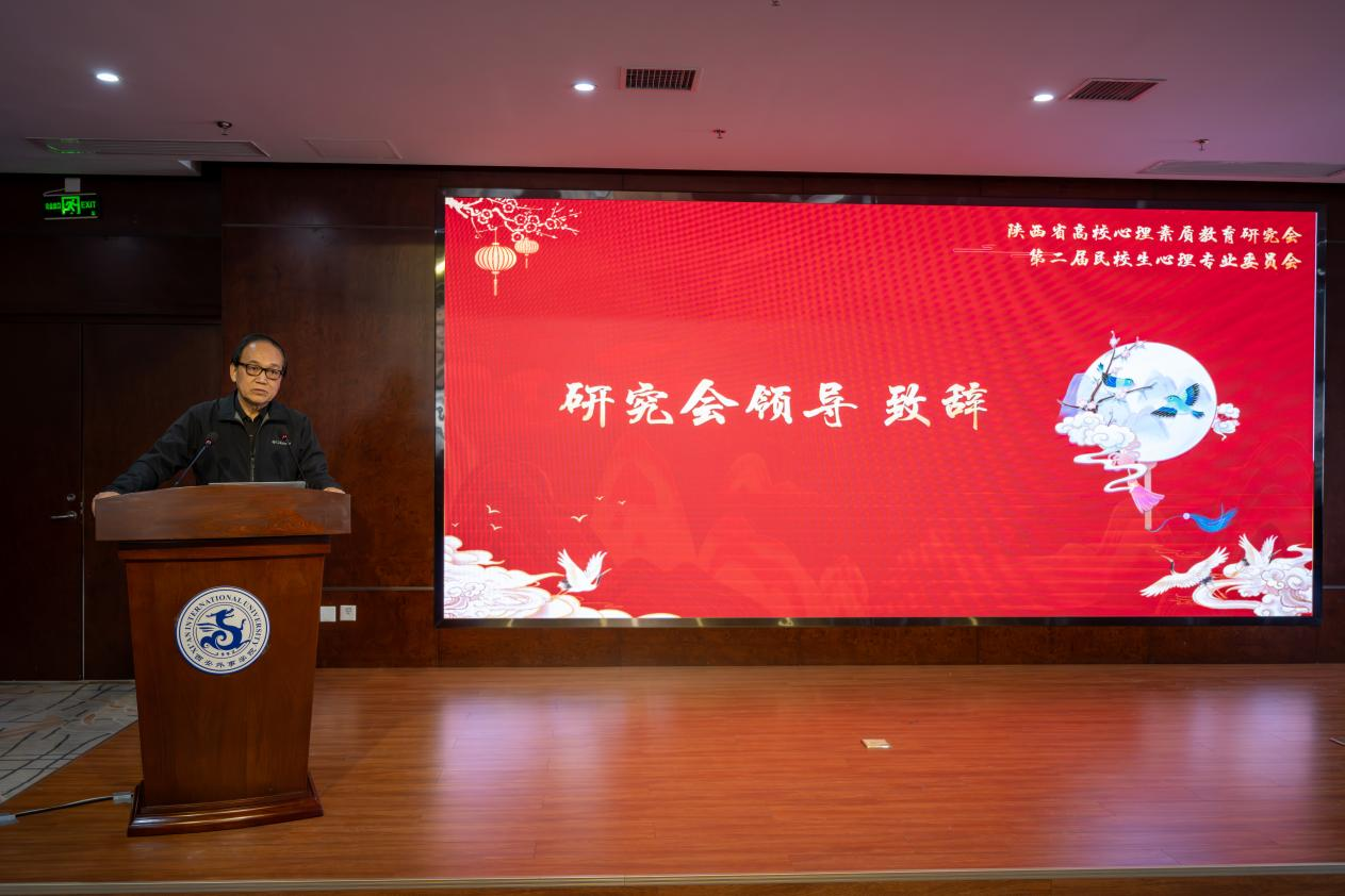 在会议开幕式上,西安外事学院副校长马宏致欢迎词,陕西省高校心理素质教育研究会会长郑林科致辞。