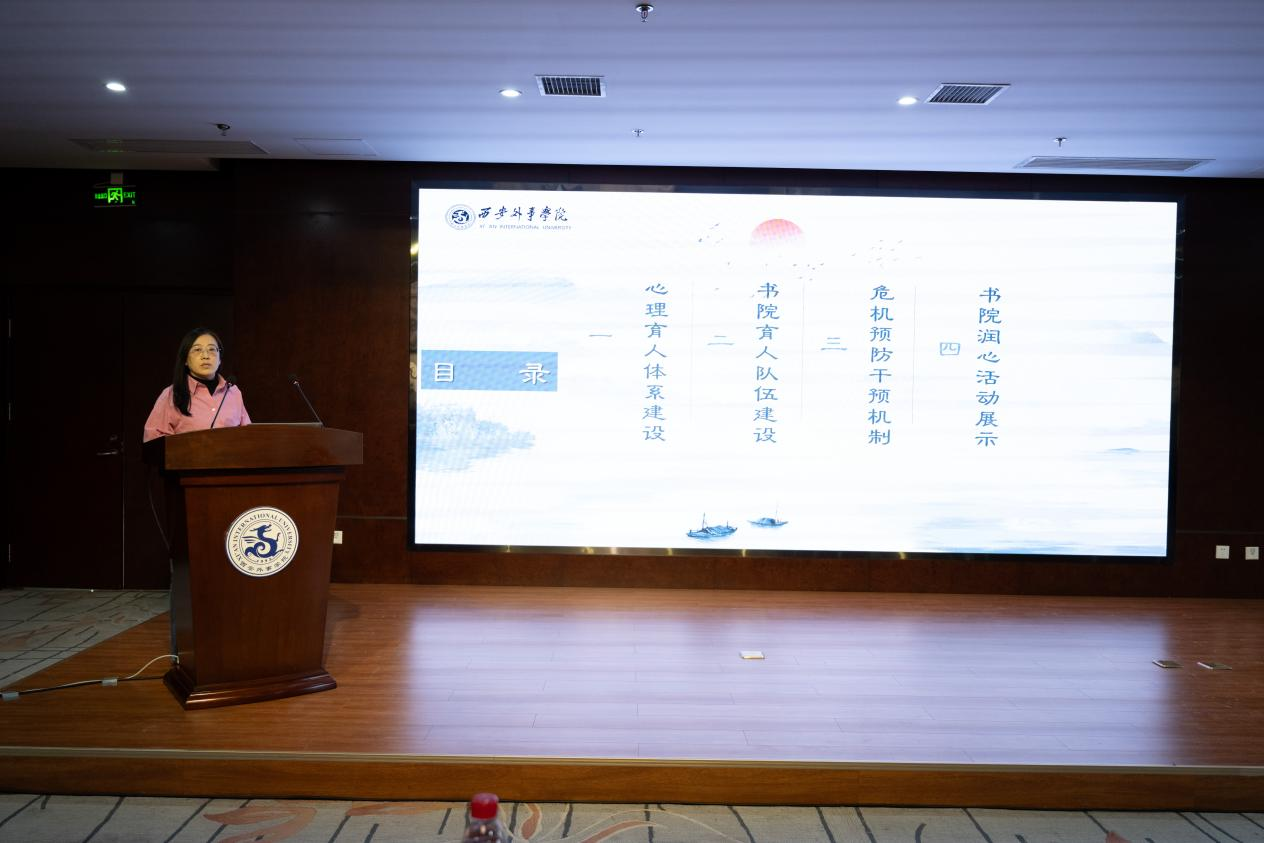 在专题分享环节,西安培华学院辅导员石戎睿星、我校通识教育学院副院长薛飘、西安外事学院心理中心副主任张程花分别围绕“表达性艺术心理疗愈”“五育并举视域下的心理育人路径”“文化浸润式育心实践”等主题分享案例,展现了各高校在心理育人领域的特色探索。