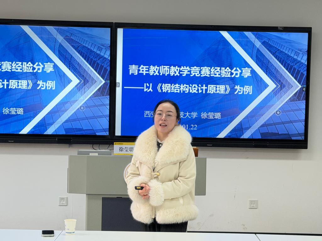 徐莹璐副教授结合自身深耕省赛、国赛的丰富实战经验,紧扣“成长轨迹、参赛筹备、课堂展示、经验总结”四大核心板块,为参训教师构建了一套完整且可落地的备赛体系。在“成长轨迹”分享中,她以自身参赛进阶历程为蓝本,拆解了从普通课堂教学到竞赛优质课堂的蜕变逻辑,强调竞赛成长是教学能力迭代升级的重要路径;“参赛筹备”环节,她围绕教学大纲精准编制、教学设计靶向撰写两大核心,结合青教赛评分标准,逐一拆解备赛关键节点,明确了大纲贴合竞赛导向、设计凸显工科特色的核心要求;“课堂展示”部分,她以《钢结构设计原理》参赛课程为实例,灵活运用视频动画、虚拟仿真等信息化手段,将抽象难懂的力学原理转化为直观可感的教学情境,深入阐释了“案例贯穿、问题驱动、BOPPPS闭环”教学模式在工科课堂的实操方法,同时从PPT版式设计、动画节奏把控、教态自然呈现等细节给出具体指导;“经验总结”环节,她聚焦教学反思深度打磨、突发问题应急处理等关键要点,分享了自身备赛避坑技巧,为参训教师提供了兼具针对性与实用性的备赛指南。
