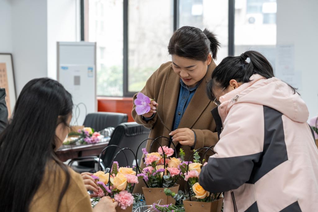 本次系列活动以思想引领与文化浸润相结合、身心关怀与美育实践相融合,设置三项特色活动,内容丰富、温馨走心。“玫瑰书香”共读一本书活动特邀大学生心理健康教育与咨询中心老师领读共读,引导女教职工在书香中认识自我、接纳自我、关爱自我,在交流分享中舒缓压力、滋养心灵,以更健康的心态与饱满状态投入教育教学与管理服务工作。“花漾时光”艺术插花活动由专业老师现场授课,讲解花艺知识、演示插制技巧,大家动手创作、巧思搭配,在一花一叶间感受美学魅力,提升审美素养与动手能力。“巧手匠心”饰品手工制作活动让参与者沉浸式体验传统手作之美,在创意构思与精细制作中收获专属作品,尽享手工乐趣,展现匠心巧思。