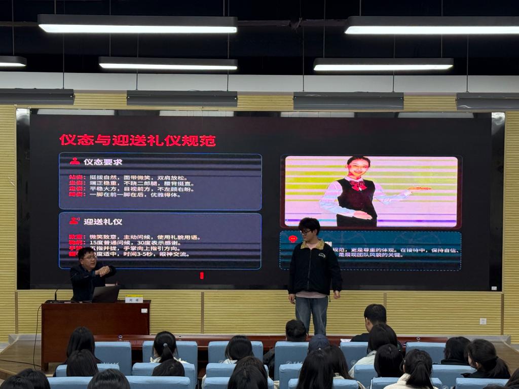 培训中,刘雄详细解读赛事背景、活动流程与服务意义,明确志愿者岗位分工与工作标准,强调本次服务既是展现明德学子风采的舞台,也是践行志愿精神、提升实践能力的课堂。培训重点围绕仪容仪表、仪态举止、沟通接待、迎送礼仪等规范展开,要求志愿者统一着装、文明用语、专业服务,以饱满热情与严谨态度面对观众、媒体与运动员。