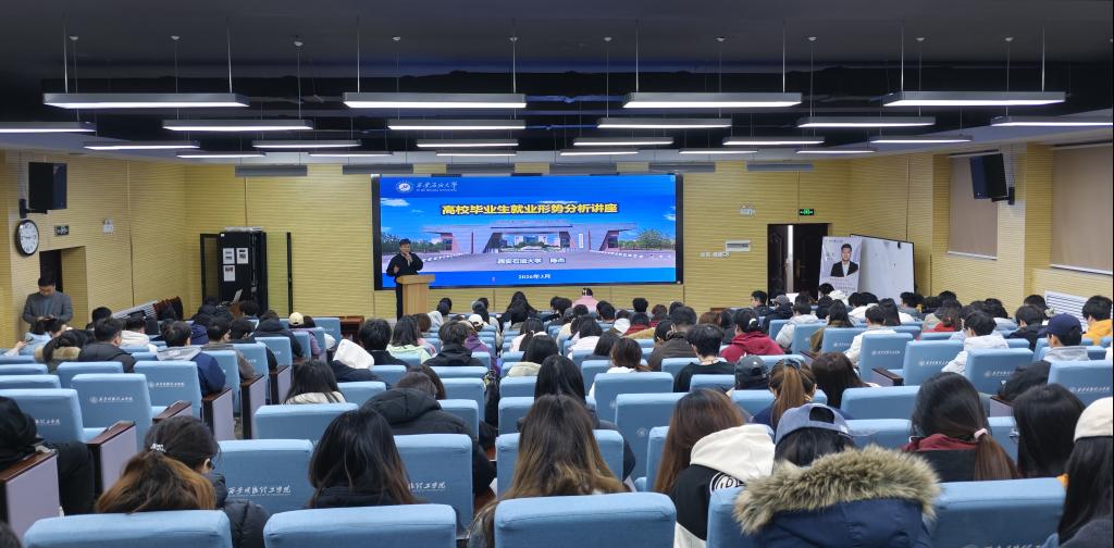 为落实国家及陕西省高校毕业生就业工作部署,扎实推进我校2027届毕业生就业指导服务,帮助毕业生把握就业形势,树立理性的就业观。3月19日,我校在建德楼202教室举办2027届毕业生就业大讲堂——就业形势分析与政策解读专题讲座暨就业导师聘任仪式。本次活动特邀西安石油大学就业创业指导中心办公室主任陈杰担任主讲嘉宾,我校就业办公室主任王育春及各学院师生代表200余人参加活动。