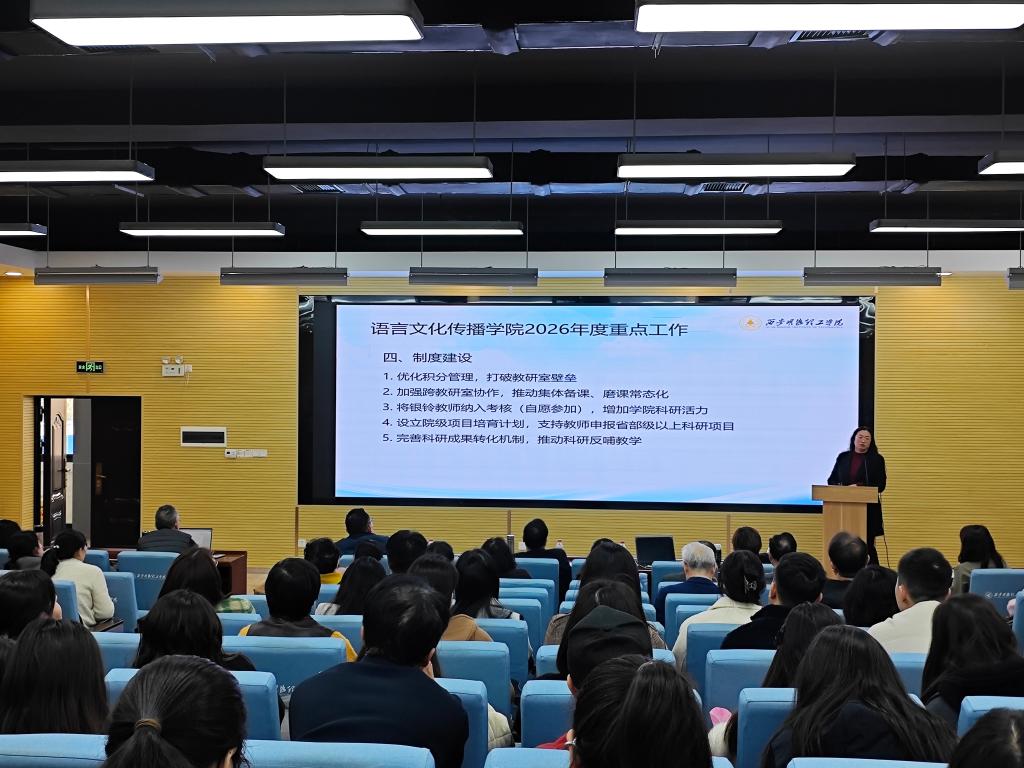 3月25日下午,语言文化传播学院召开2026年重点教学工作部署会,全面部署本年度重点教学及各项相关工作。学院领导班子、全体教师参会,会议严格按照既定议程有序推进,确保各项部署要求传达到位、落地见效。