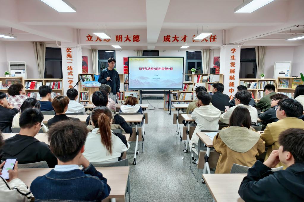 为持续夯实班团干部队伍建设根基,压实班级管理工作责任,高效推进学院学生工作提质增效,同时全面落实学校本科教学工作合格评估相关工作部署,4月6日晚自习时间,智能制造与控制技术学院辅导员李永帆于 “一站式” 学生社区梅苑学生发展赋能中心,主持召开班团干部履职赋能专题会,学院102012501-8八个班级的班团干部代表悉数参会。