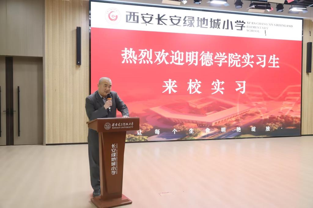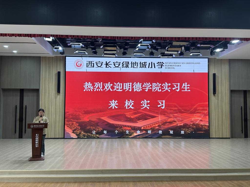 4月7日,西安明德理工学院语言文化传播英语专业,英语学科教学方向实习生走进西安长安绿地城小学,正式开启实习之旅。西安长安绿地城小学李正岐校长、裴翔主任,英语组全体指导教师,西安明德理工学院英语专业负责人霍小静,指导教师陈虹、吴月等出席实习启动仪式。