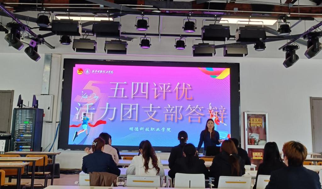 答辩现场,各参选团支部书记与团支部代表依次登台,围绕思想建设、团日活动、学风营造、志愿服务、班级凝聚力等方面展开汇报。参选团支部书记以生动翔实的内容,展现自身履职尽责、服务同学、引领青年的责任与风采;各团支部则通过活动回顾、成果展示、未来规划,呈现出朝气蓬勃、团结向上的良好风貌,充分体现了明德青年坚定理想、奋勇争先的青春姿态。