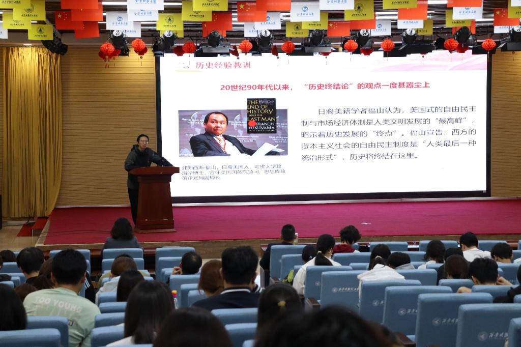 首先,施英楠老师以“坚守马克思主义根本立场,坚决维护政治安全”为主题,深刻阐明政治安全在国家安全中的根本性地位。授课中,他紧扣国家政权安全、中国特色社会主义制度安全、意识形态安全三大核心要义系统阐释,并结合苏联解体的深刻历史教训与西方意识形态渗透的现实风险,鲜明指出,必须毫不动摇坚持党的领导、坚守马克思主义指导地位,切实筑牢政治安全防线,有效防范化解各类政治安全风险。