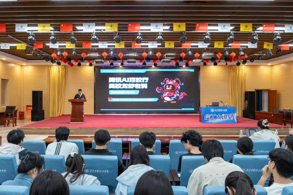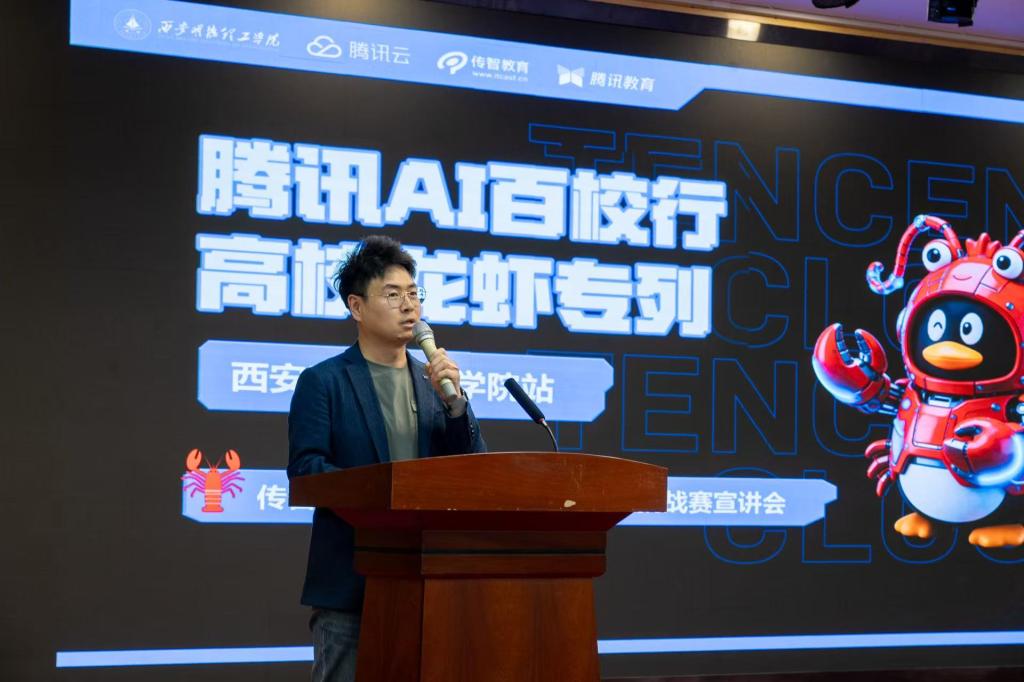 4月16日,西安明德理工学院信息工程学院“信工大讲堂”第三讲在建德楼203圆满举行。本次讲座以腾讯AI百校行【龙虾专列】为主题,特邀腾讯云AI赋能高校公益行动宣讲人、传智教育院校赛事总监薄元老师主讲,信息工程学院各年级学生到场参与。