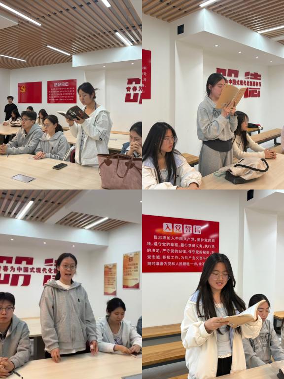 在“红色美文共读”环节,支部入党积极分子诵读经典篇目。从《火种》中革命先辈面对背叛与牺牲时的隐忍坚守,到赵一曼写给儿子宁儿的深情家书,大家以声传情,将文字背后的信仰与初心娓娓道来。现场同步投影展示原文,全体成员或同步阅读、或轻声跟诵,在字里行间感受烽火岁月里的赤诚与热血。