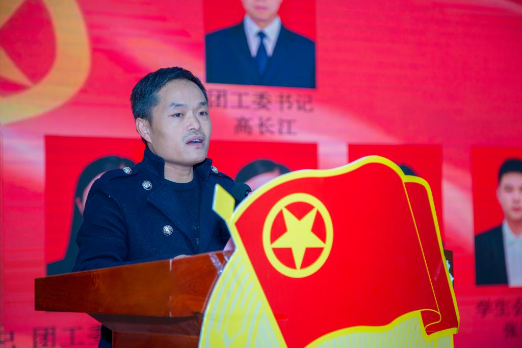 大会伊始,全体起立奏唱团歌。随后党委(学生)工作部副部长童杨梓老师宣读高职学院团工委成立批复。党委(学生)工作部乔建老师宣读高职学院团工委、学生会主要干部名单。最后,由高职学院副院长王君涛发表讲话。