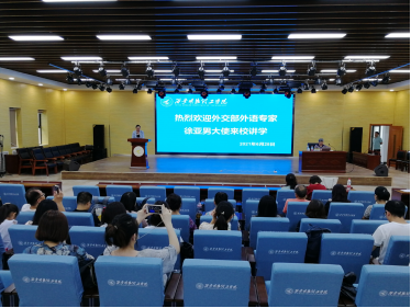 6月28日下午,在建德楼203,外交部外语专家、中国联合国协会理事、中国翻译学会常务理事徐亚男前大使为我校师生作了题为“联合国文件翻译的特点及技巧”的学术报告。报告会由语言文化传播学院副院长刘勇教授主持。语言文化传播学院全体教师及在校生参加。