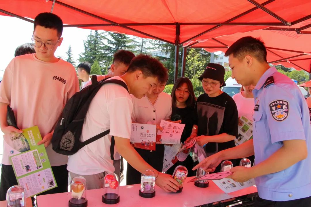 讲座结束后,碑林区禁毒大队在学校中心广场进行外展宣传,通过禁毒宣传展板、禁毒宣传手册、毒品样品模型、播放禁毒宣传视频、现场讲解等形式向学生普及禁毒的相关知识,增强大学生自觉抵制毒品侵袭的能力。