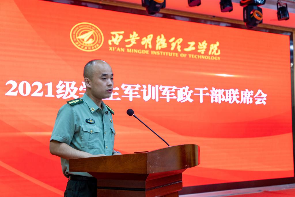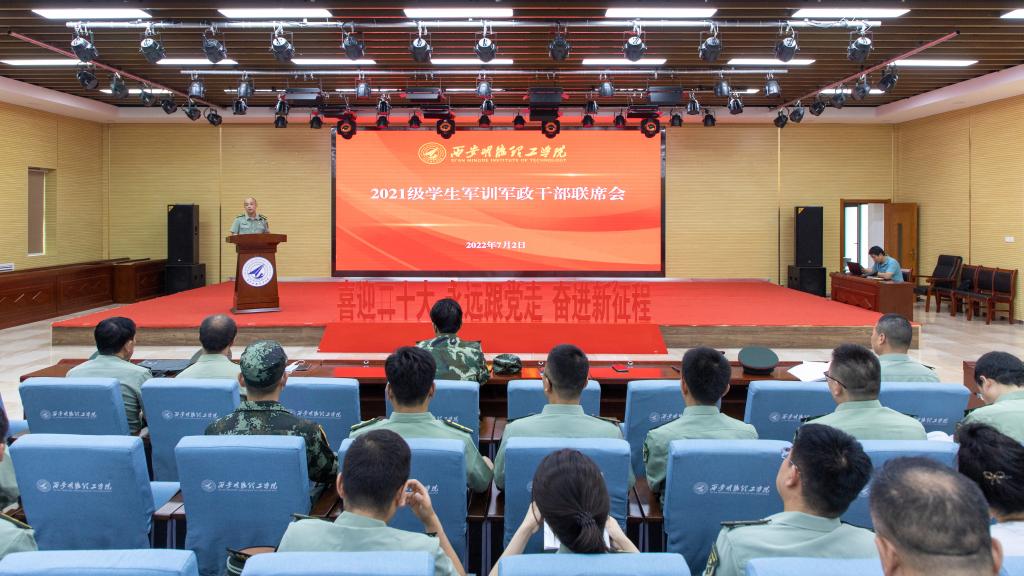 7月2日下午,2021级学生军训军政干部联席会在建德楼203举行。学校党委学生工作部副部长、军训团政委童杨梓,军训团军事训练顾问伍继强、团长李东君、参谋长段颖盟、副团长朱延波及全体军训团干部参加了会议。会议由副政委王飞主持。