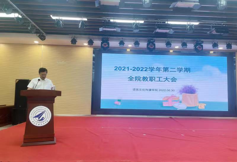 6月30日下午,在建德楼203,语言文化传播学院召开全院教职工大会。学院全体教职工参会,副院长刘勇教授主持会议。