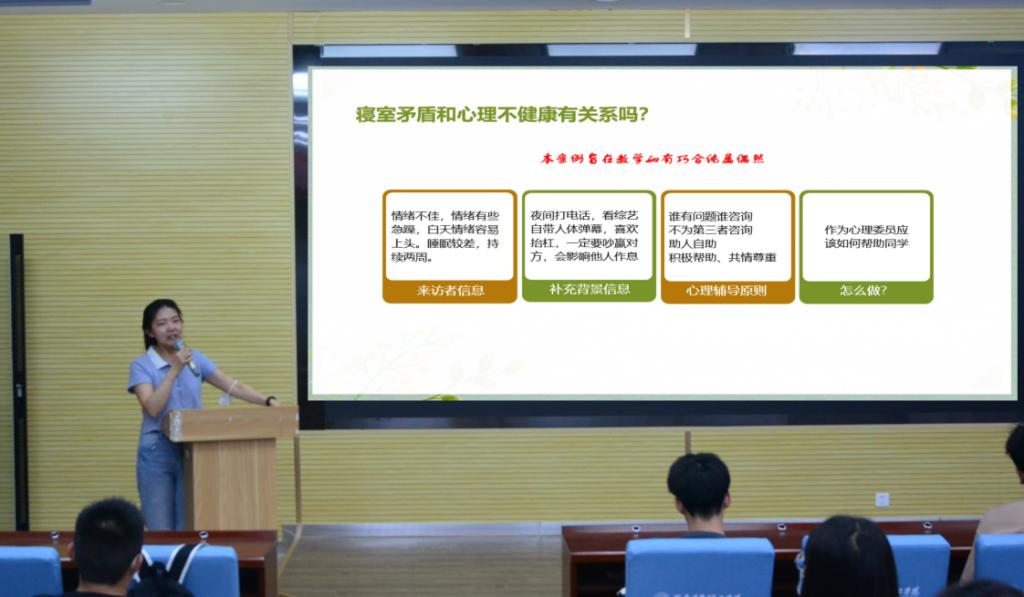 为保证心理宣传季活动的实效性和针对性,各学院根据学生不同年级、不同专业特点等,结合学生心理压力,积极打造特色品牌活动,以团支部为单位开展一次心理健康主题团日活动,以宿舍为单位开展一次宿舍心理健康教育活动,例如手语操、手抄报、学业指导帮扶活动、心理健康微视频拍摄、心理健康专题讲座、心理健康趣味运动会等,丰富学生校园文化生活,缓解学生心理压力。