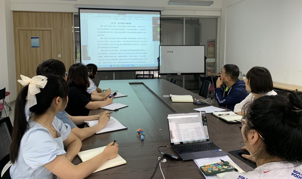 为深入贯彻落实全国职业教育大会精神,落实中共中央办公厅、国务院办公厅《关于推动现代职业教育高质量发展的意见》,教育部等八部门印发的《职业学校学生实习管理规定》等文件精神,进一步做好高职学生顶岗实习工作,推动2020级学生顶岗实习工作的顺利开展,7月12日下午,高等职业技术学院在明志楼北206会议室通过线上线下相结合的方式召开了2020级顶岗实习动员大会暨第一批企业宣讲会。立臻科技(昆山)有限公司、立讯精密工业(苏州)有限公司、江苏远洋数据股份有限公司、名硕电脑(苏州)有限公司、日善电脑配件有限公司等五家企业作为第一批宣讲企业受邀参加,高等职业技术学院院长舒忠、办公室主任陆鹤、辅导员、教务员及2020级全体同学参加了此次大会,会议由副院长王庭良主持。