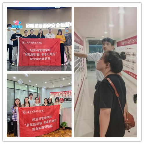 为进一步拓宽就业渠道、深化校企合作,为经济与管理学院2023届毕业生提供更多就业岗位,加深校企双方互信互通,共同培养造就创新能力强、适应社会发展需要的高质量应用型人才。暑假期间,经济与管理学院“启航新征程 青春引路行”就业实践调研队在指导老师罗夫惠和王秀美的带领下,先后前往秦创原·西部云谷,西安启明星辰科技有限公司、西安迪科数金智能科技有限公司、安徽阳光信通电子科技有限公司西安分公司、东亚前海证券有限公司陕西分公司、陕西华恩教育科技有限公司、招商银行西安分中心、江苏百瑞赢证券投资有限公司西安分公司、西安领桥投资管理有限公司等园区和8家企业进行调研学习。学院2023届毕业生代表参与调研活动。