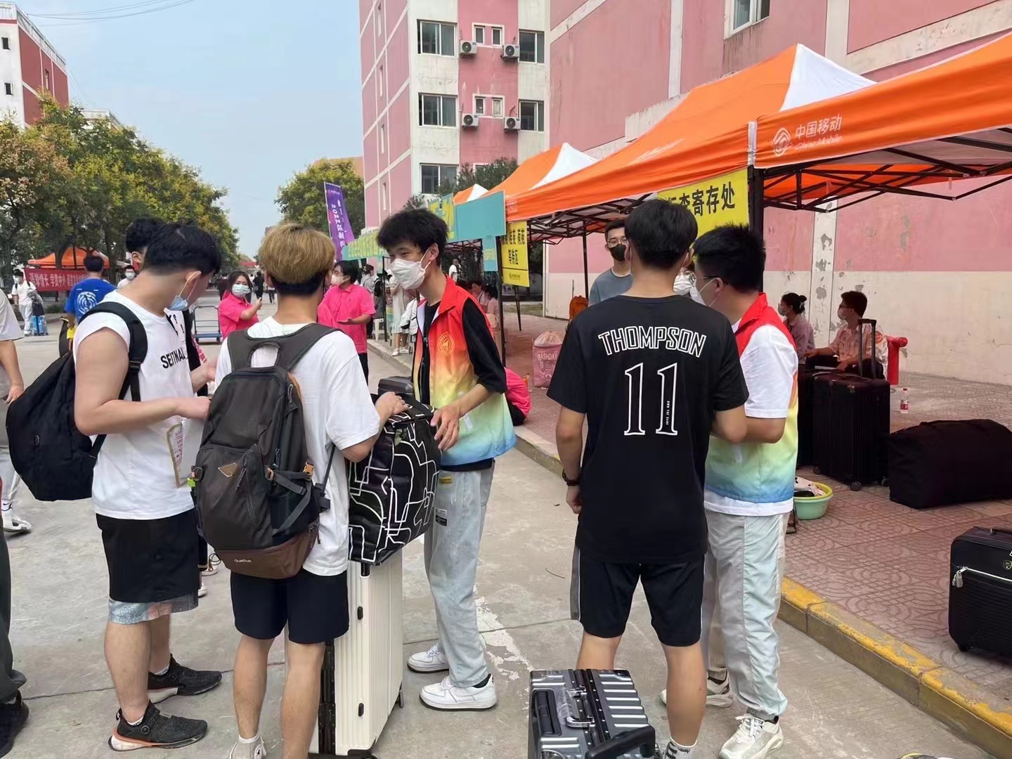 迎新现场,志愿者们整装待发迎接新生入校,他们分工明确、恪守职责,为新生们的引导和搬运行李。只为保证行李不遗失、不损坏,切实保障了新生的财产安全。细心周到的服务不仅让新生报到没有“后顾之忧”,更让因疫情无法入校的家长们放心。