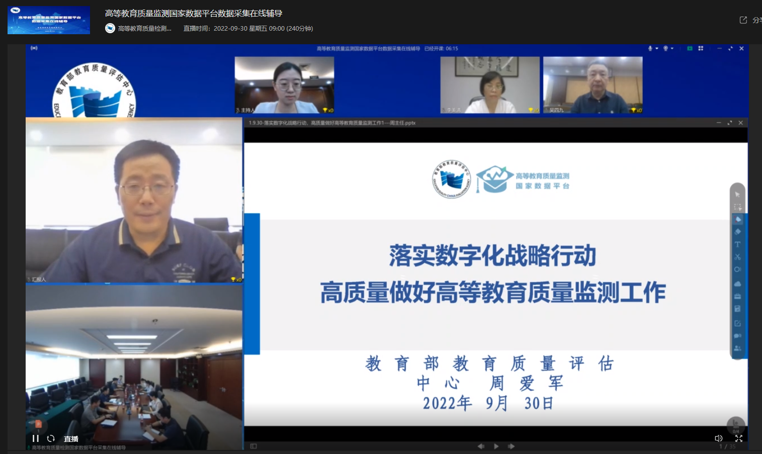 我校于9月底启动2022年高等教育质量监测数据填报工作,组织学校填报专员参加2022年高等教育质量监测国家数据平台数据填报及分析应用在线辅导培训会,在充分理解今年国家数据新变化和指标内涵的基础上,于10月9日下午,在明心楼南403实验室,规划发展与协调处组织召开2022年高等教育质量监测数据填报工作线上线下结合培训会,学校相关单位数据填报专员及麦可思基本状态数据采集平台技术人员共34人参会。